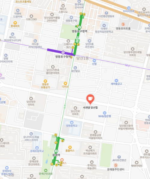 사과당 당산점 위치가 문래역과 영등포구청역 사이이기 때문에