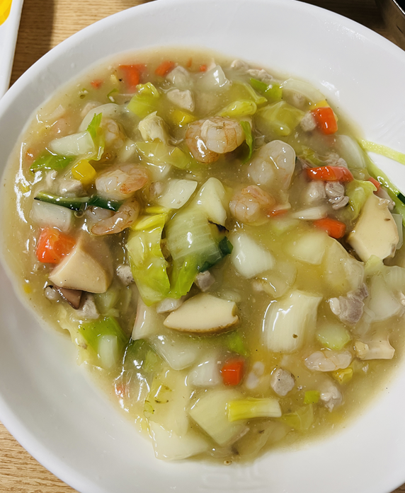 이름에 걸맞게 오징어, 홍합, 소라?, 주꾸미 등 해물이 진짜 잔뜩 들어있고 청경채와 양파, 당근 같은 각종 야채도 푸짐하게 올라가 있다.