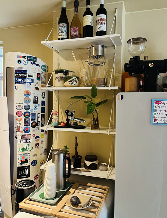 카운터의 파란색이 좋아서 카운터를 배경으로 찍어봤다.