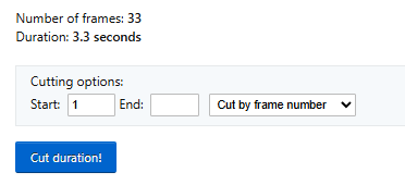 맨 오른쪽 동그라미 친 Cut을 누르면 현재 영상의 길이와 처음, 끝을 설정하는 칸이 나온다.