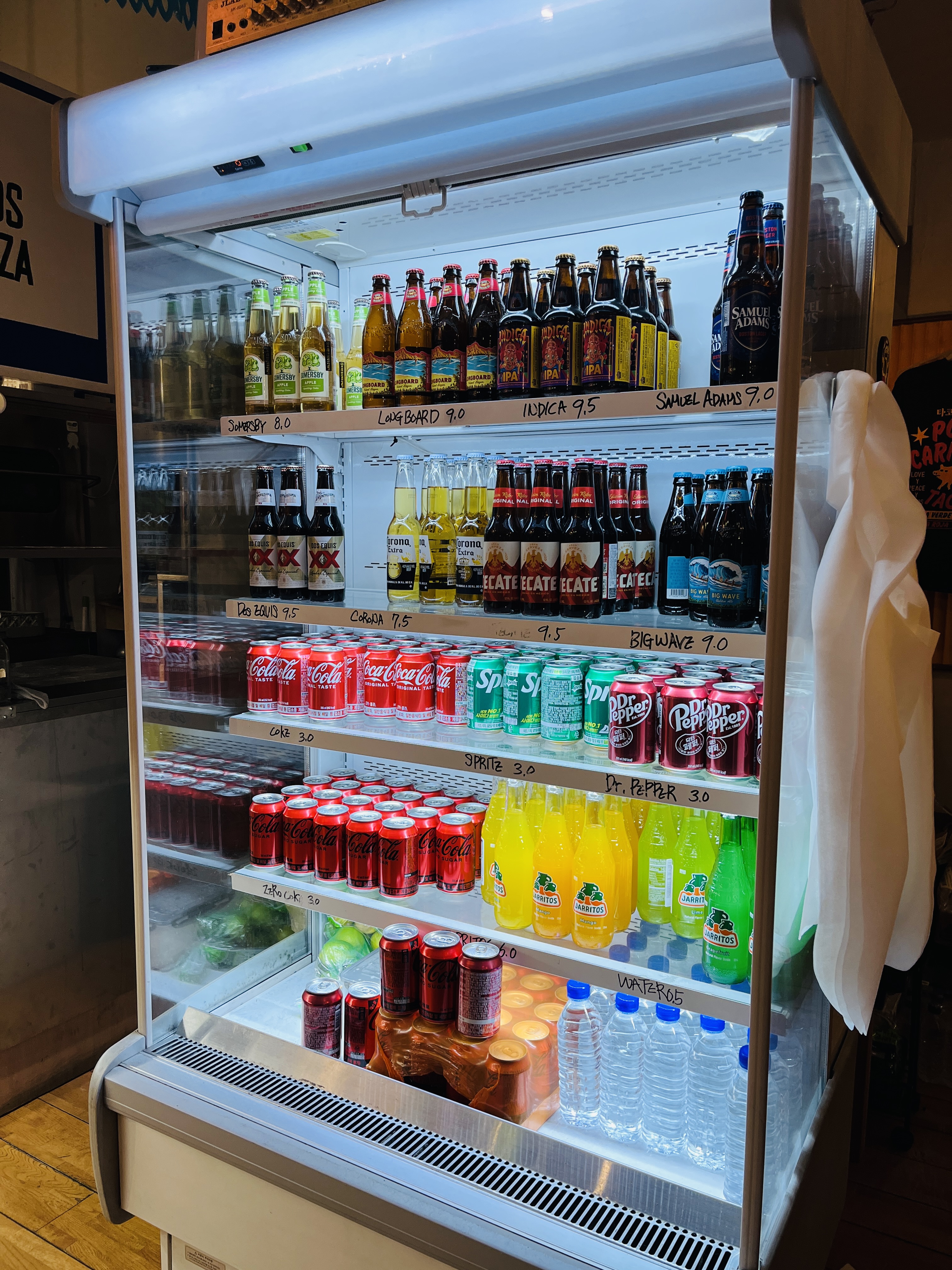 카운터 쪽 주방은 오픈키친이라 내부도 잘 보였다. 음료 냉장고도 인테리어처럼 매장 중앙에 배치하신게 특이했다. 그래서 음료 셀프로 가져가는 건가 했는데 그건 아니었음ㅋㅋㅋ 직접 얼음컵과 함께 가져다주셨다!