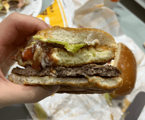 시그니처인 와퍼 패티와 두툼한 통모짜패티, 마요네즈 양상추까지... 너무 맛있어 보이는 단면..ㅠ