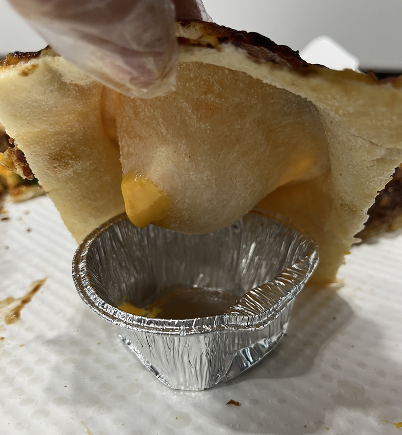 치즈딥 부분을 살짝 찌르니 바로 나오는 치즈 디핑 소스..!! 완전 찐~~~한 체다치즈 향이 났다.