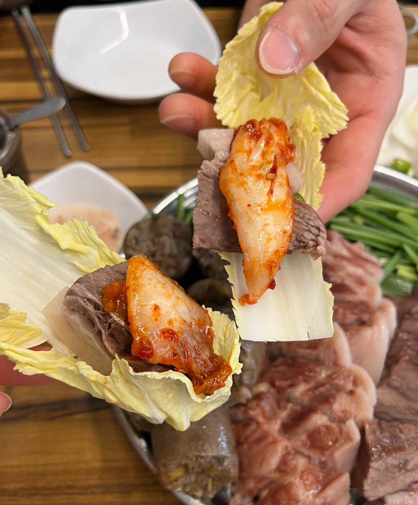 소주 짠 하고 알배추에 수육에 김치 딱 올려서 한입 싸악 먹으면...!